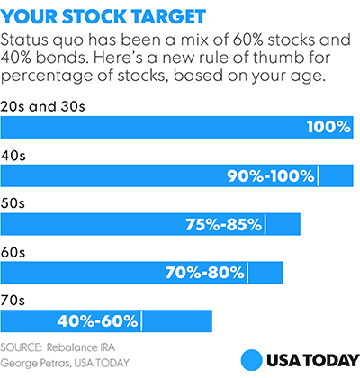 Therefore, Puritz says, someone in their 50s and even their 60s should have plenty of exposure to stocks as they focus on growth over the long term and not the risk of short-term losses.