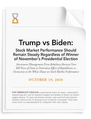 Bethesda, MD – October 19, 2020 – Regardless of whether Trump or Biden are victorious, stock market performance should remain steady following November’s historical presidential election, according to research conducted by award-winning investment firm Rebalance.