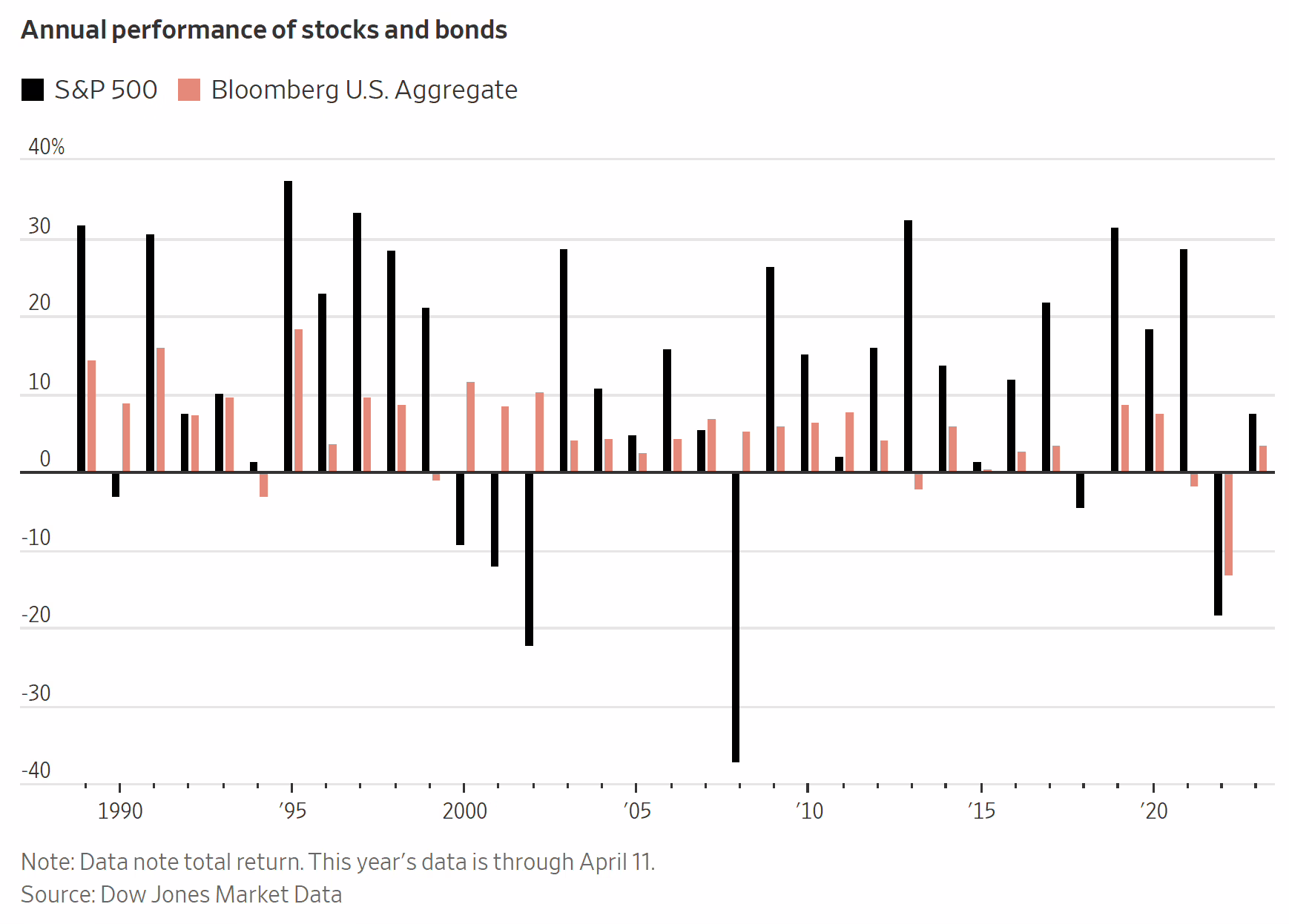 Of course, there is no guarantee that the 60-40 strategy will keep working, and the market’s trajectory is especially difficult to predict. The economy is still humming along, inflation remains hot and the banking crisis that erupted in March appears to be contained—all of which could propel the Fed to keep raising rates.